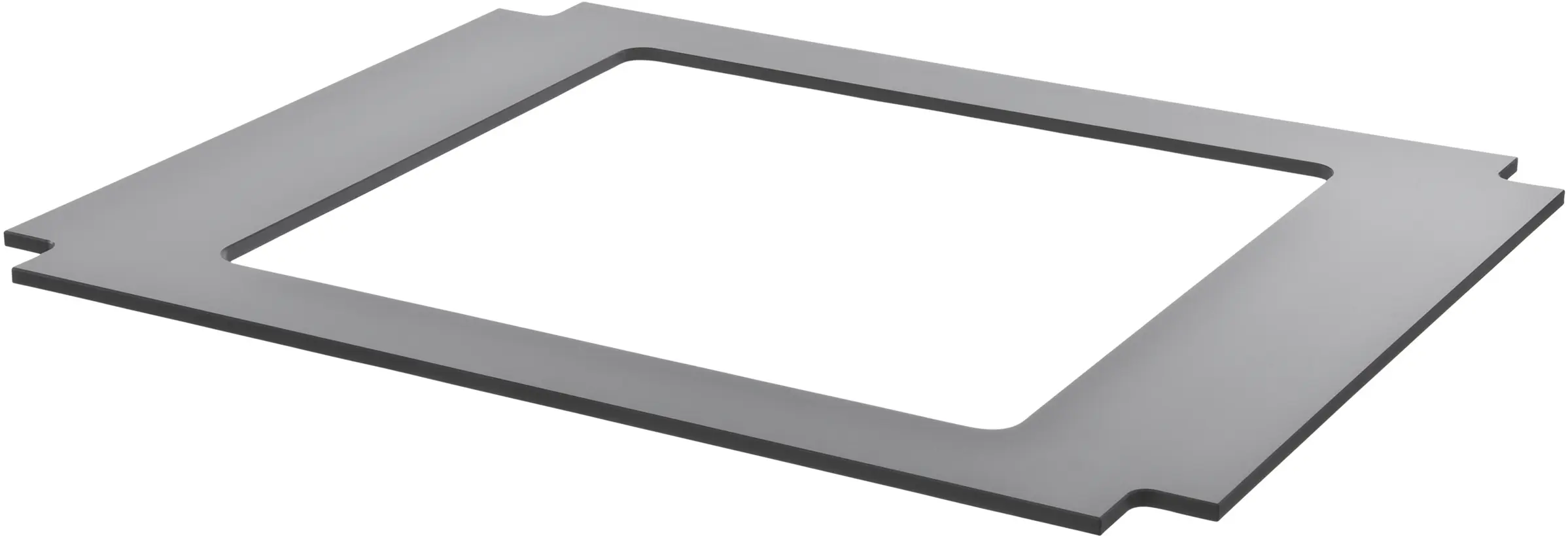 Med denne malen og en overfres kan en fagmann skjære ut hullet i benkeplaten, slik at innleggsrammen (spesialtilbehør) kan limes på plass. Dermed kan man få en vanntett og flukt tilpasning av platetopper i benkeplater av tre og laminat.
