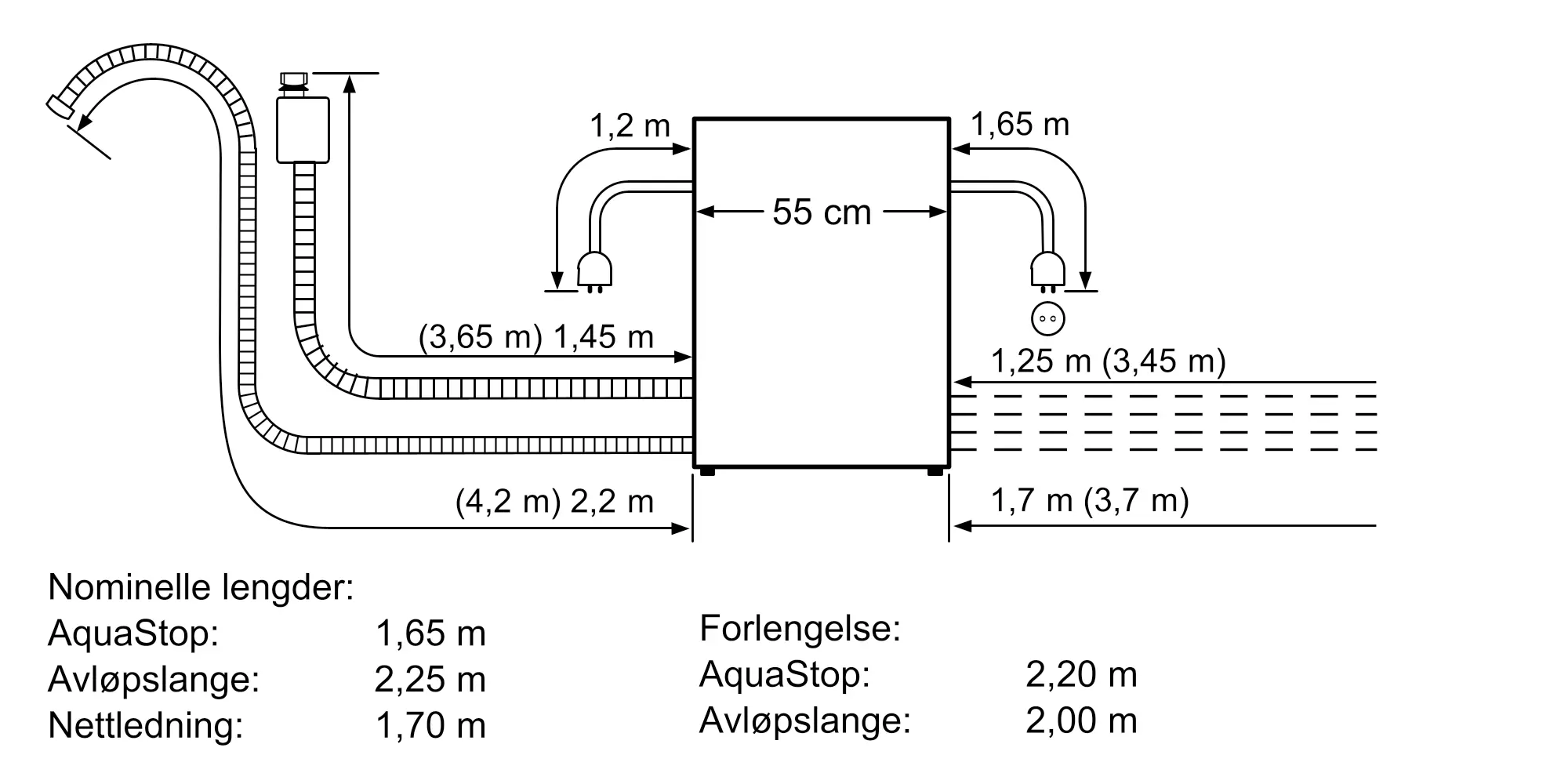 Vannforbruk i liter per syklus med økonomiprogram