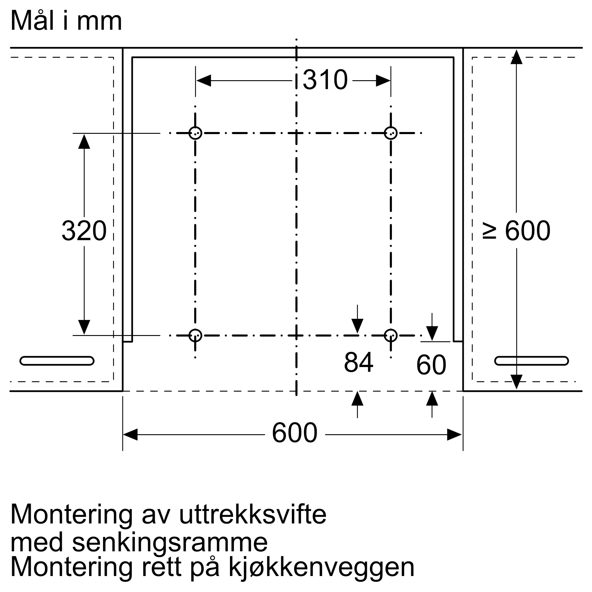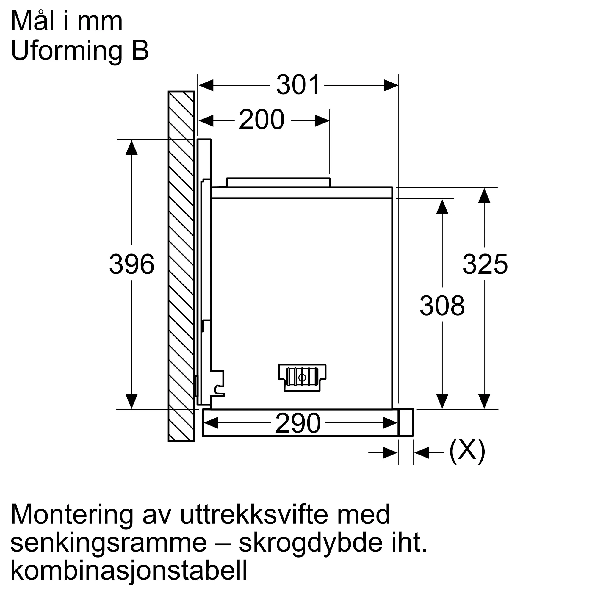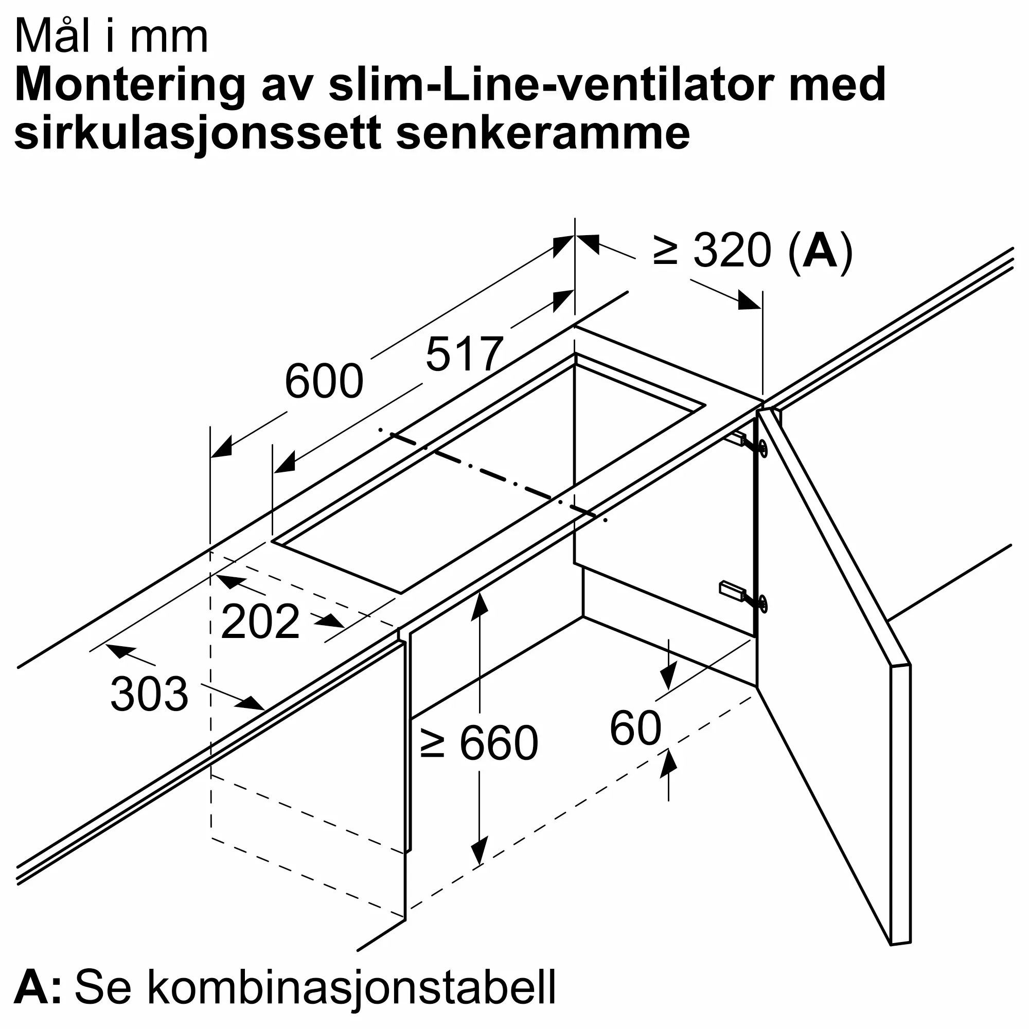 Nedsenkingsramme lar den uttrekkbare ventilatoren forsvinne helt i overskapet.