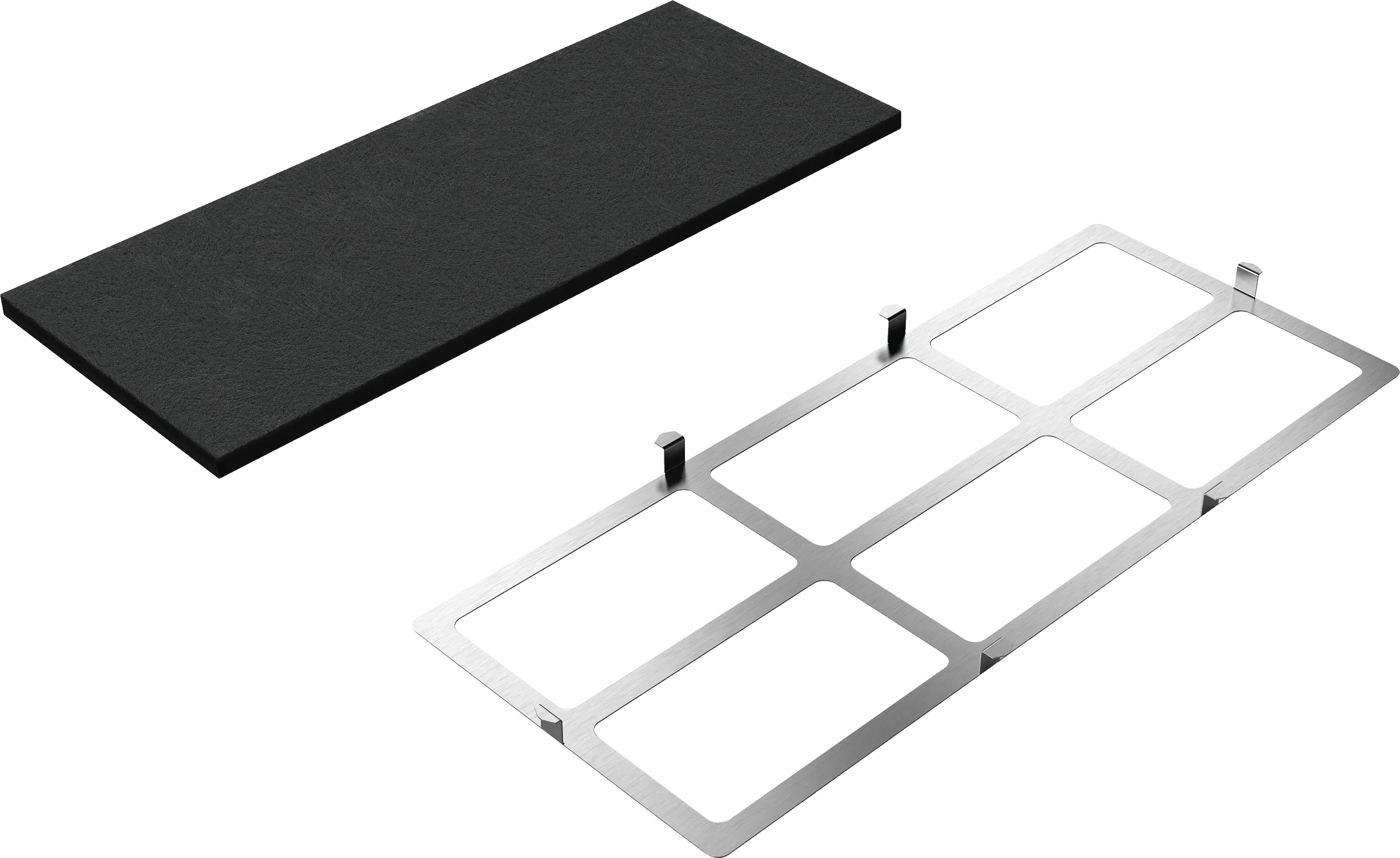 Inneholder et aktivtkull-filter og en stålrist for montering.
