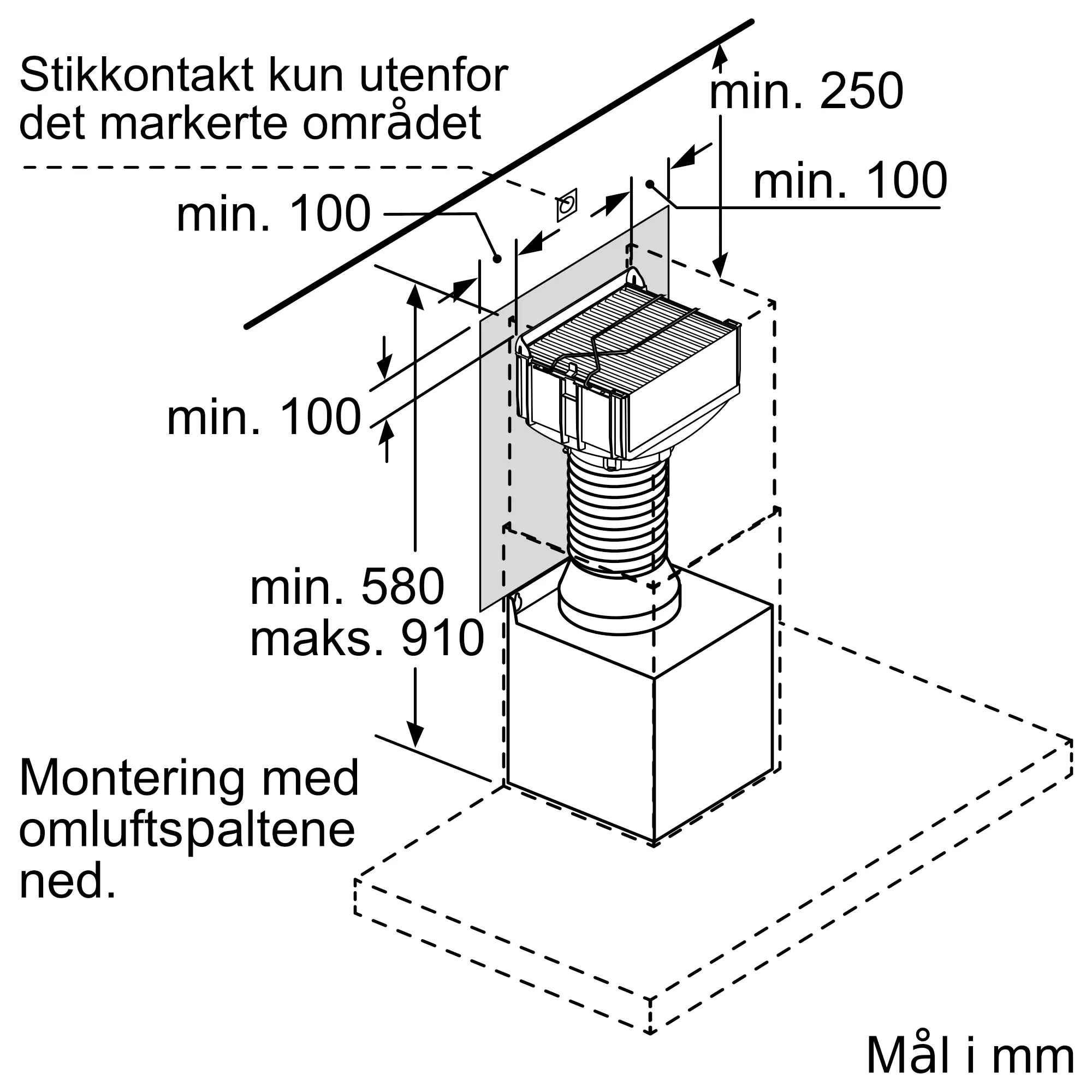 Integrert design: det integrerte Clean Air Plus omluftsett er installert usynlig i kanalen. Det kan installered på forskjellige høyder.