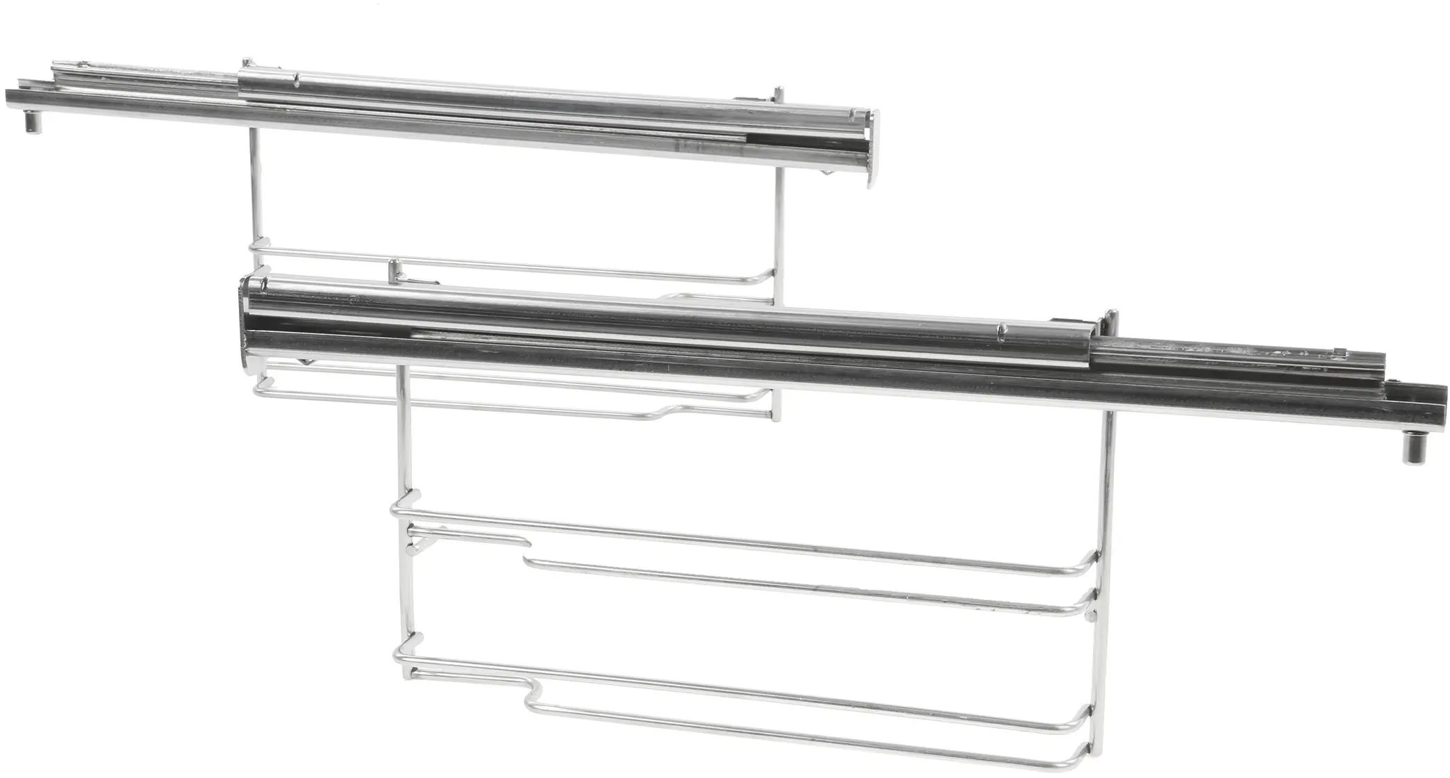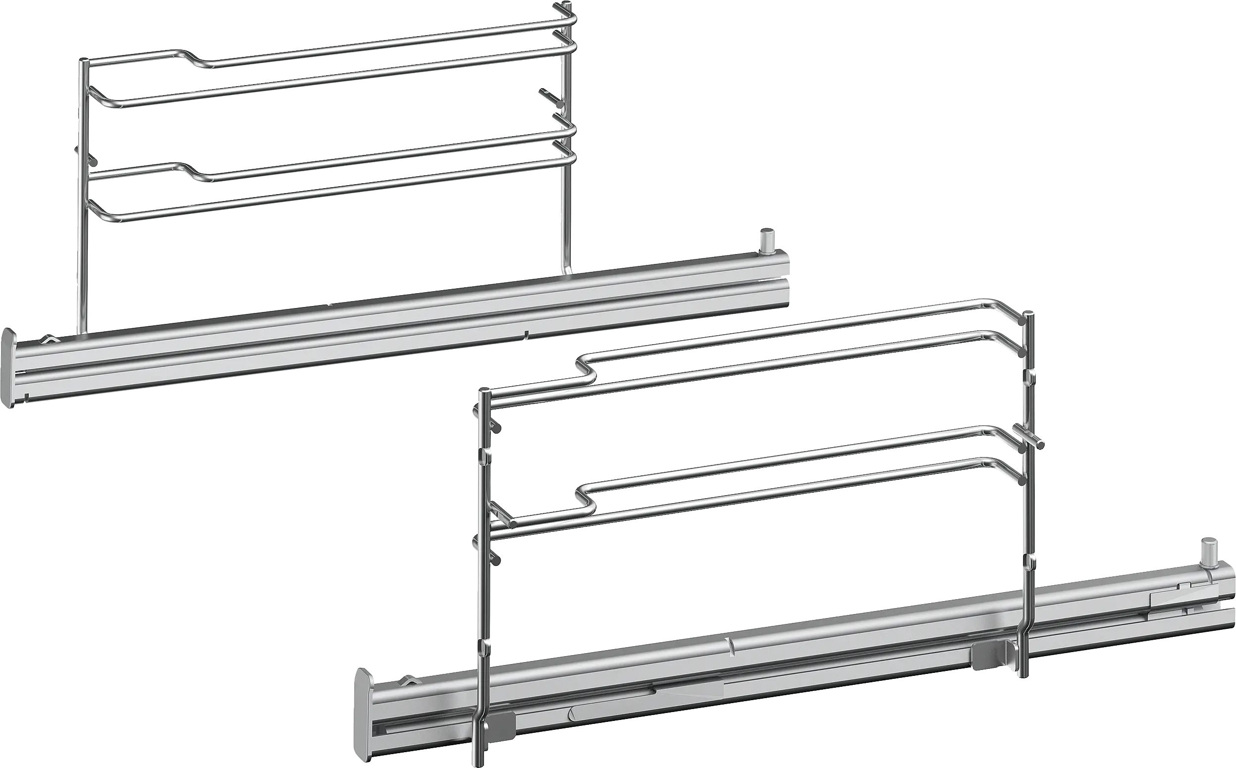 Med teleskopskinnene (par: venstre og høyre) på nivå 2 kan du dra tilbehøret ut av ovnen uten at det tipper over