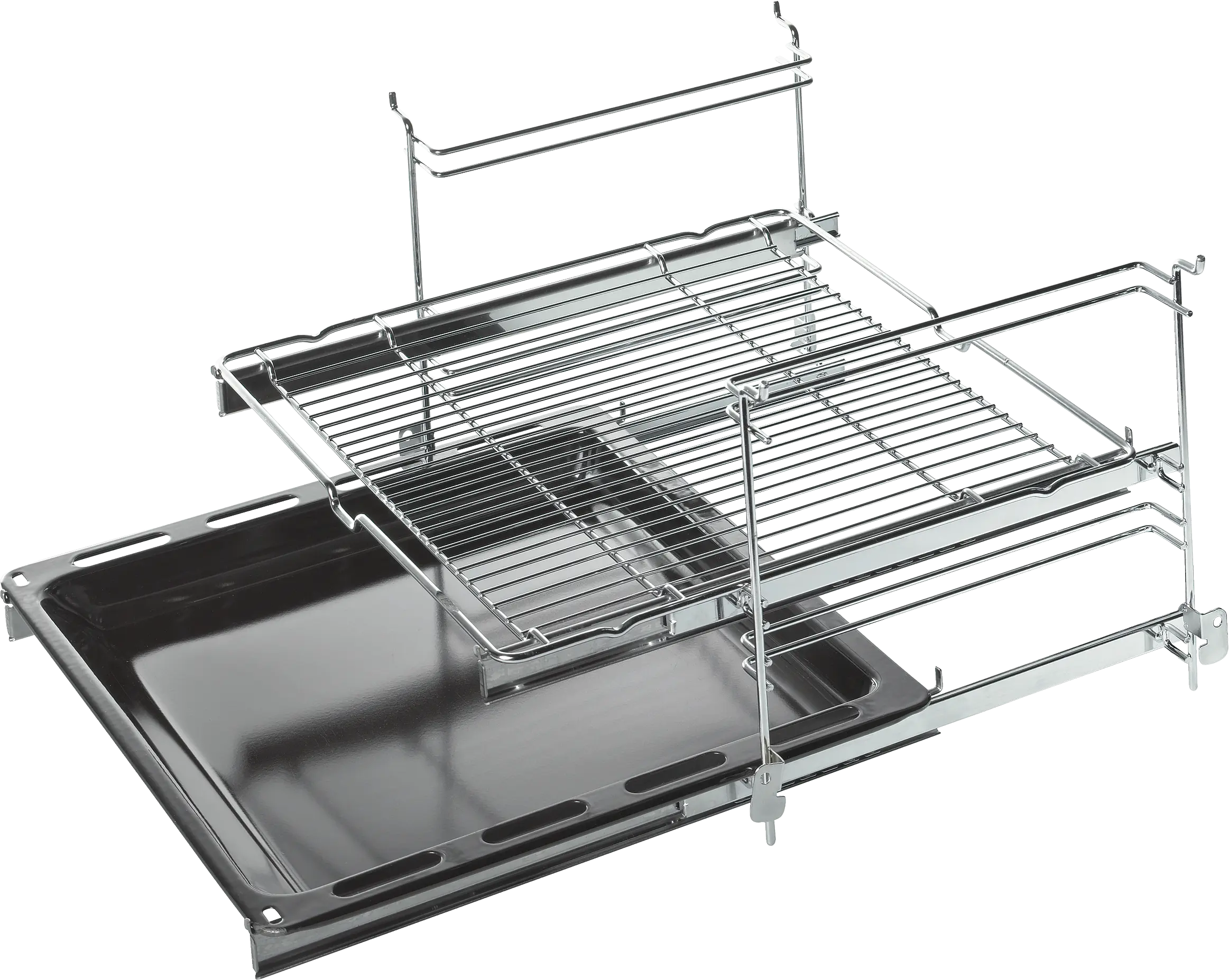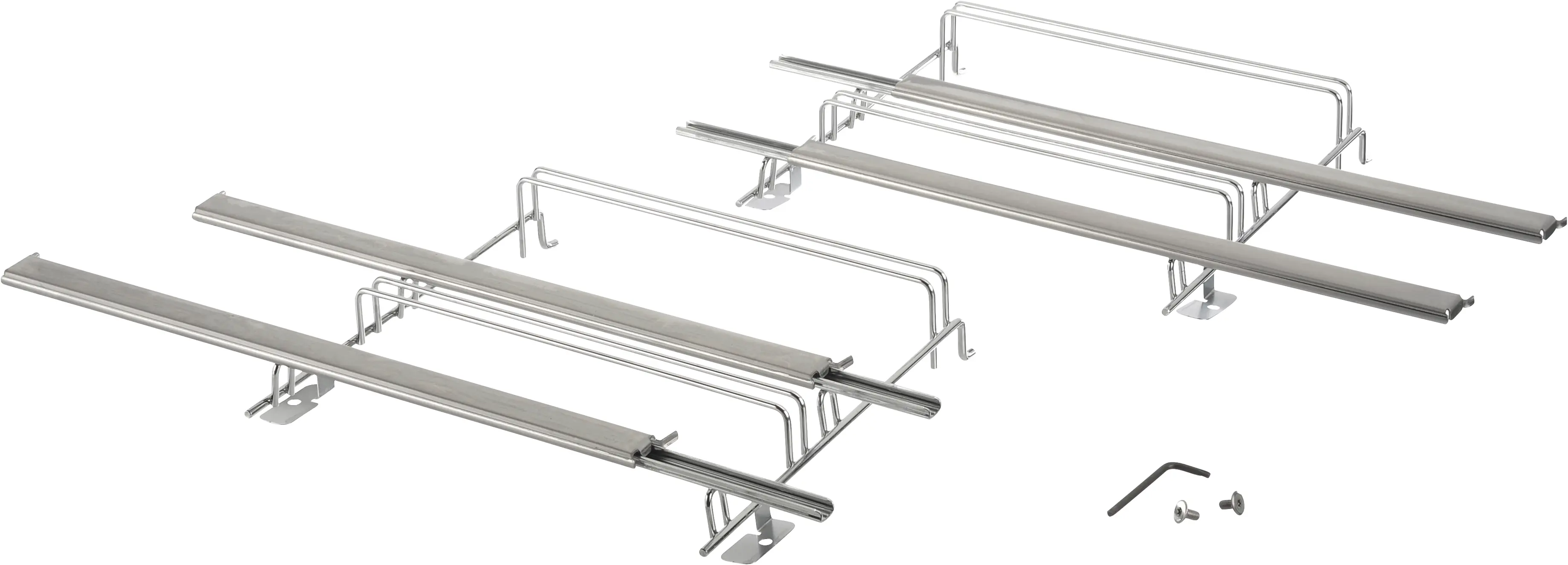 Stekebrett og rister ligger stødig og fint på skinnene. Ingenting vil velte, selv under tung last