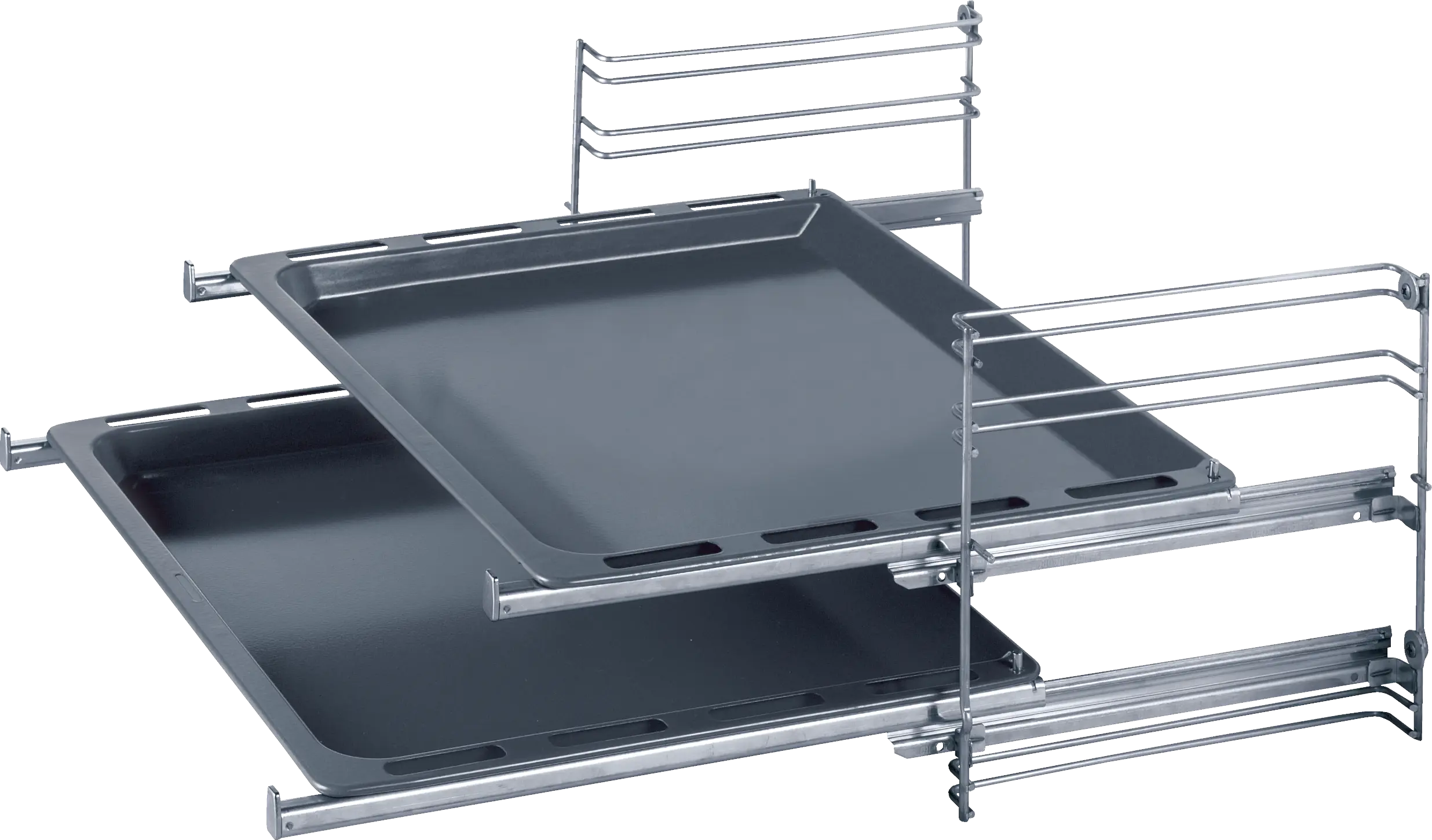 Med teleskopskinnene på 2 nivåer, kan tilbehøret trekkes ut av ovnen uten å vippe over