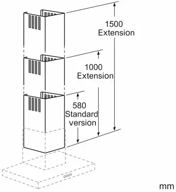 Med denne ekstra boksen kan den totale høyden på enheten økes med maks. 420 mm sammenlignet med standardutstyret