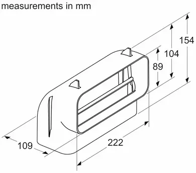 Vertikal 90° bue med mindre radius for kanalføringer (delvis) i møbelet (fra 65 cm benkedybde)