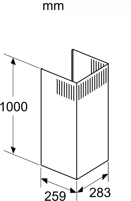 Forlengelse på 1000 mm (teleskopisk del) for veggmontert skorsteinshette
