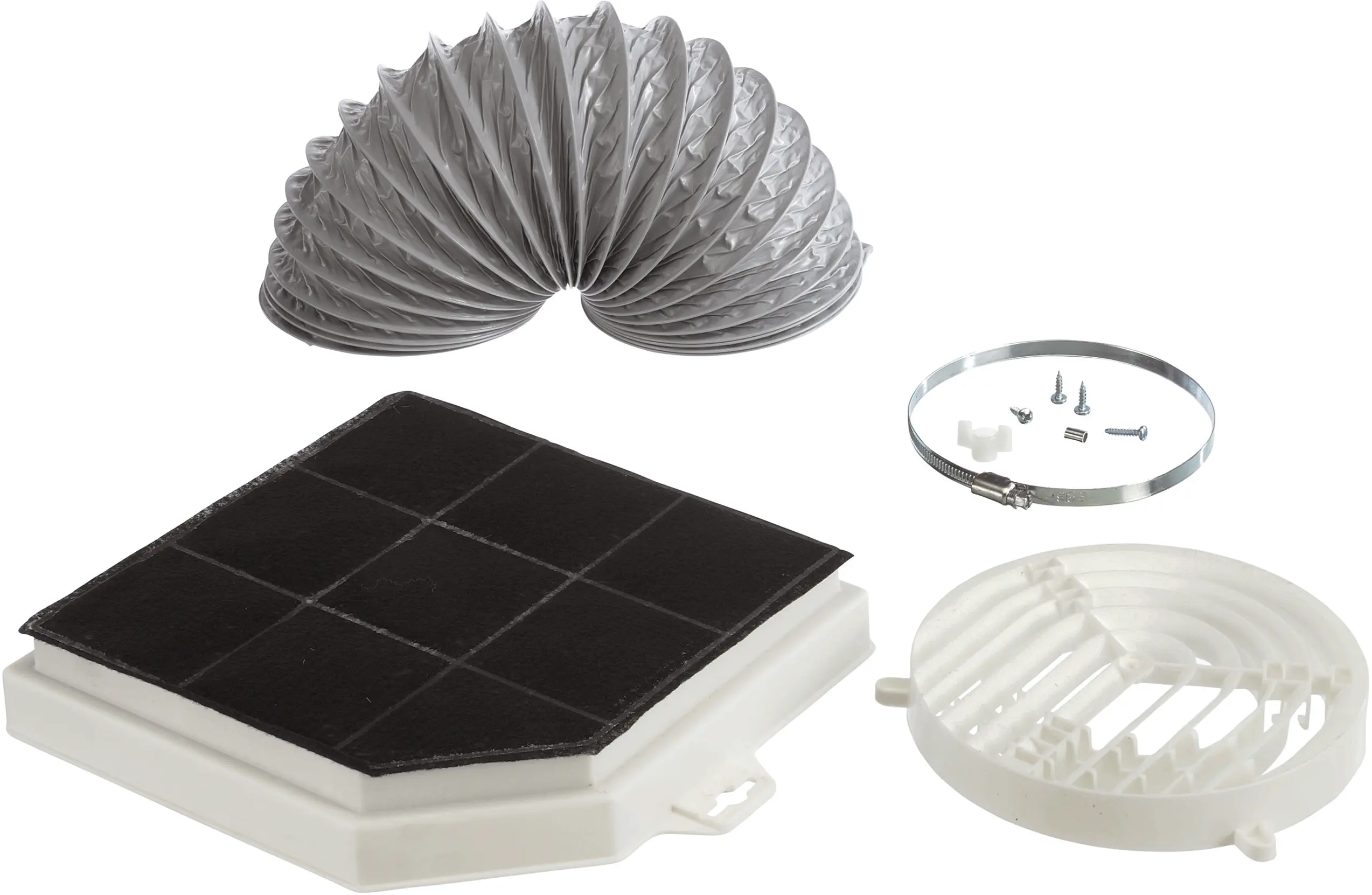 Består av: kullkassettfilter, deflektor, fleksibel slange ø 120 mm, 800 mm lang med 2 klemmer, monteringsmateriale