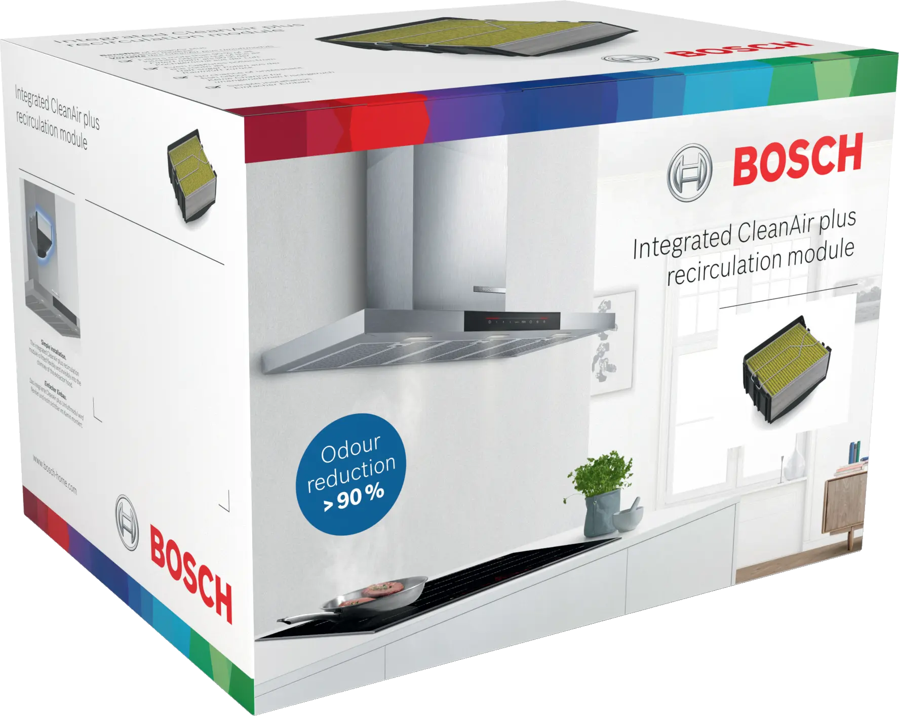 Resirkuleringssett med Clean Air Plus høyytelsesfilter: Renser lukt og pollen effektivt fra luften.