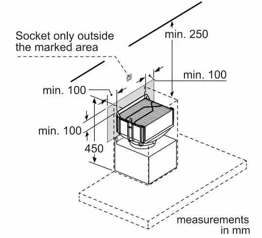 Integrert design: Integrert Clean Air Plus resirkuleringssystem er installert usynlig i skorsteinen. Installasjon er mulig på forskjellige høyder