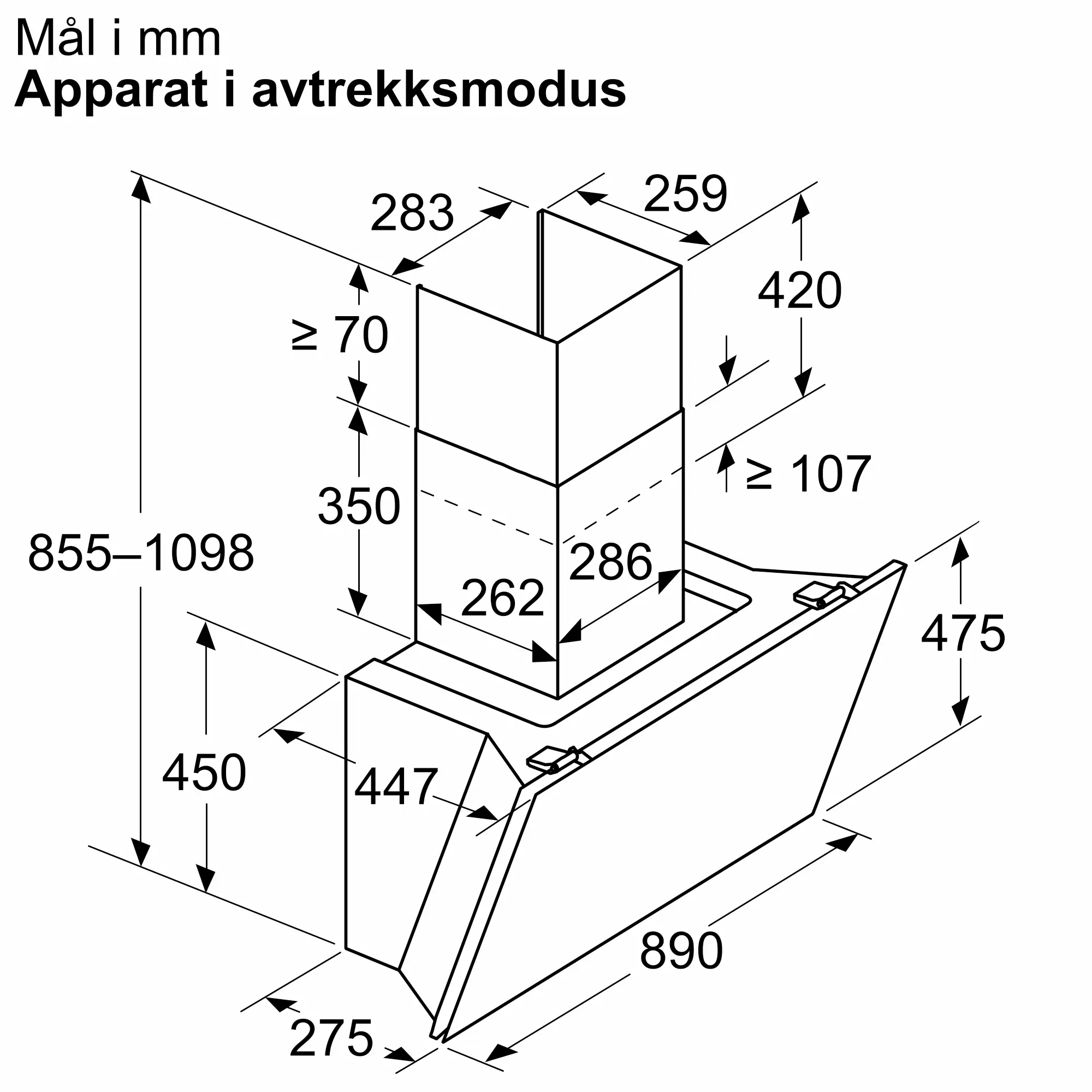 Serie 8 Veggmontert ventilator 90 cm Klart glass m svart trykk, SortDWK91LT60