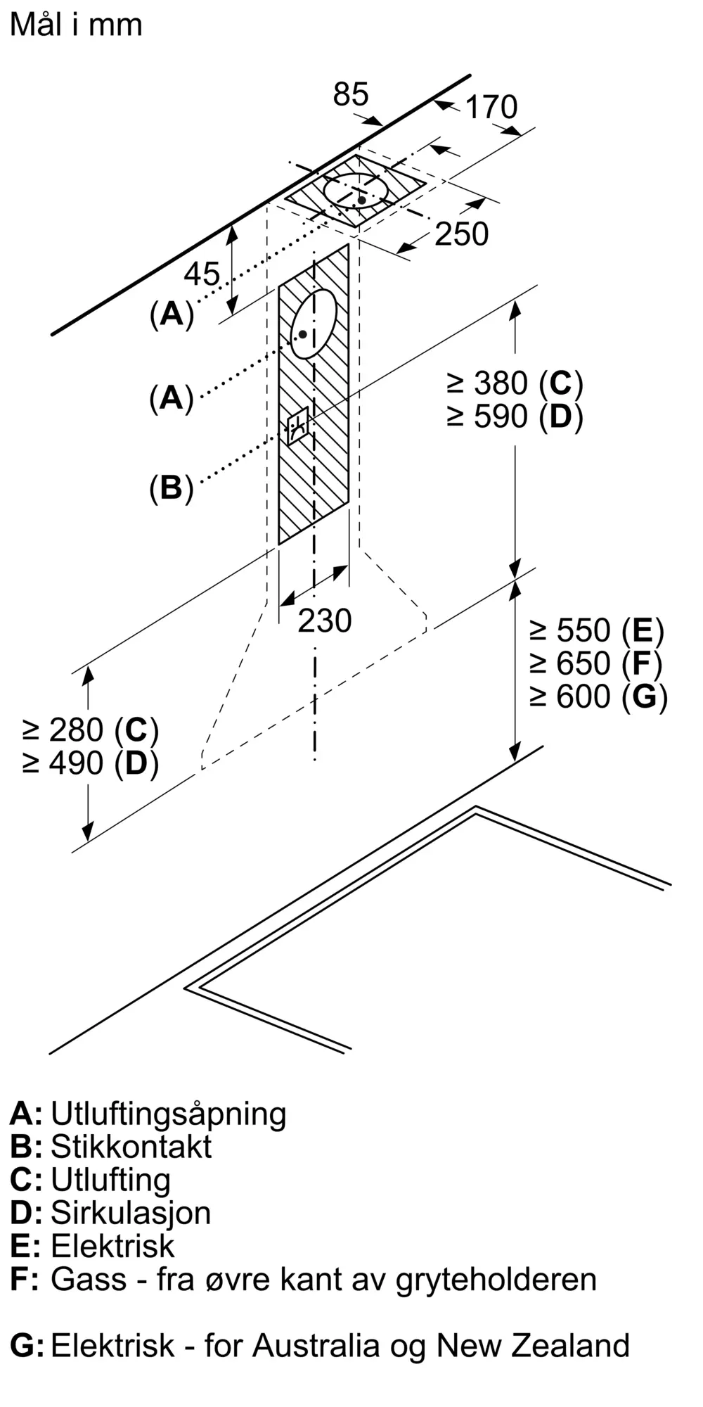 Utluft/resirkulering (tilbehør tilgjengelig separat)
