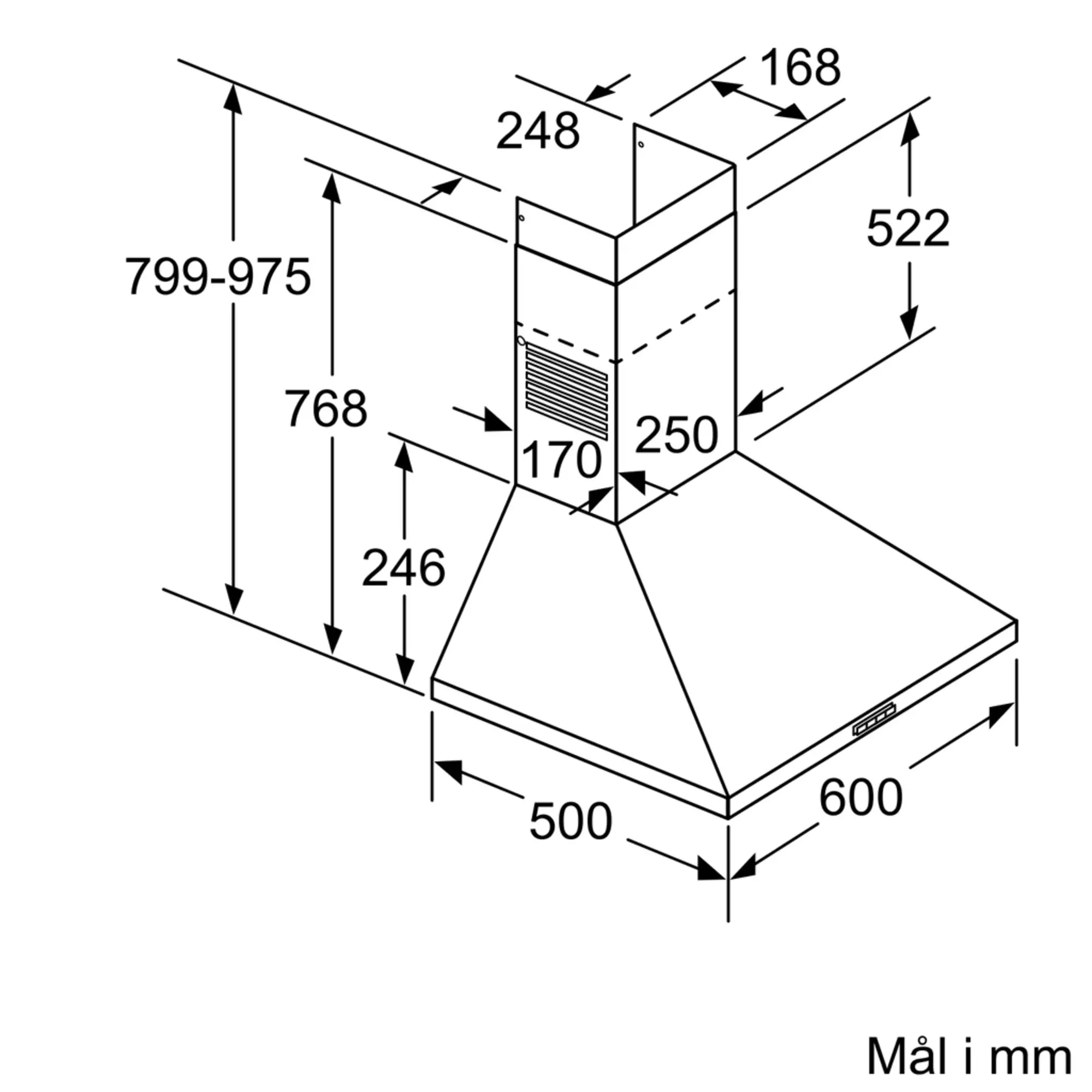 Serie 2 Veggmontert ventilator 60 cm Rustfritt stålDWP64BC50