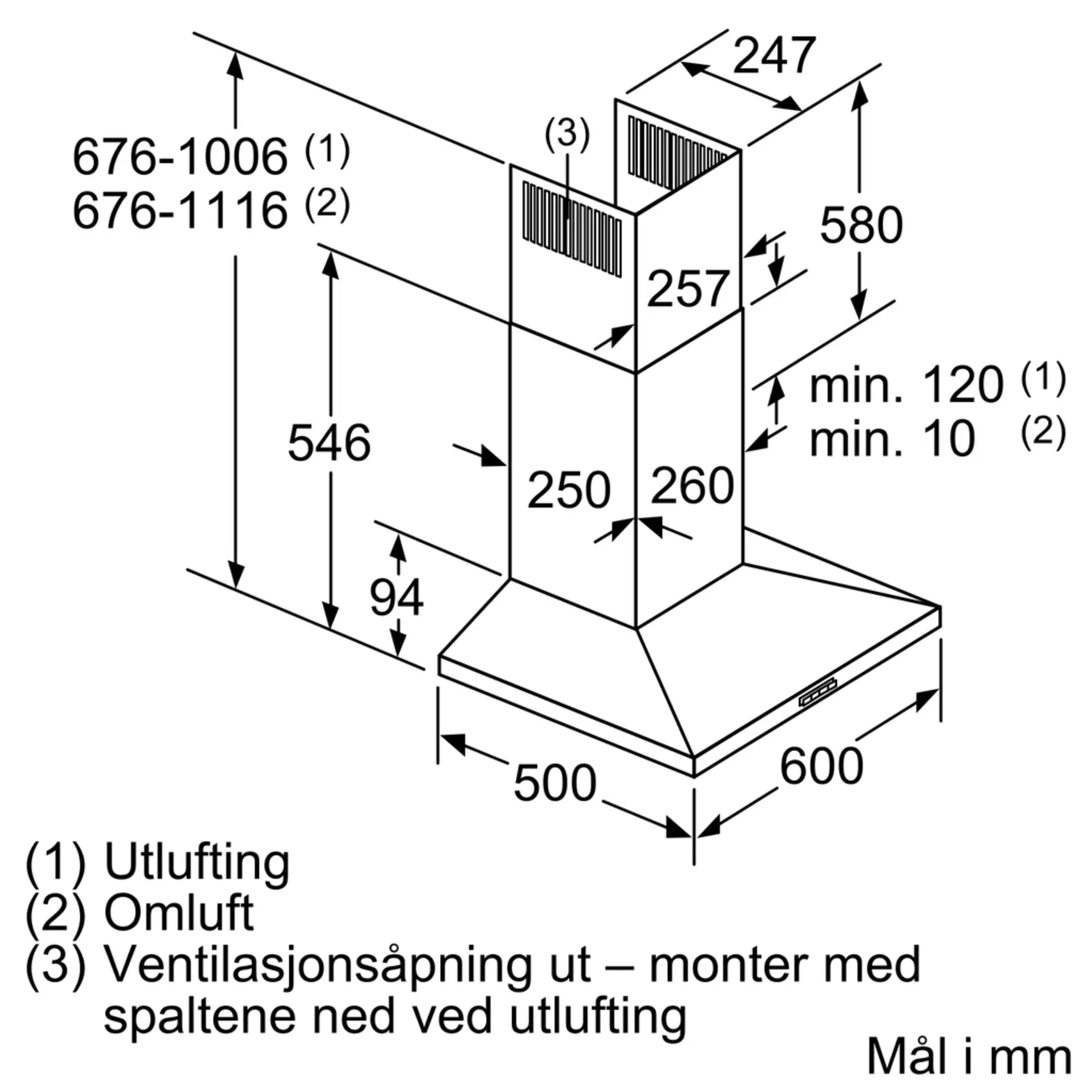 Utluft/resirkulering (tilbehør tilgjengelig separat)