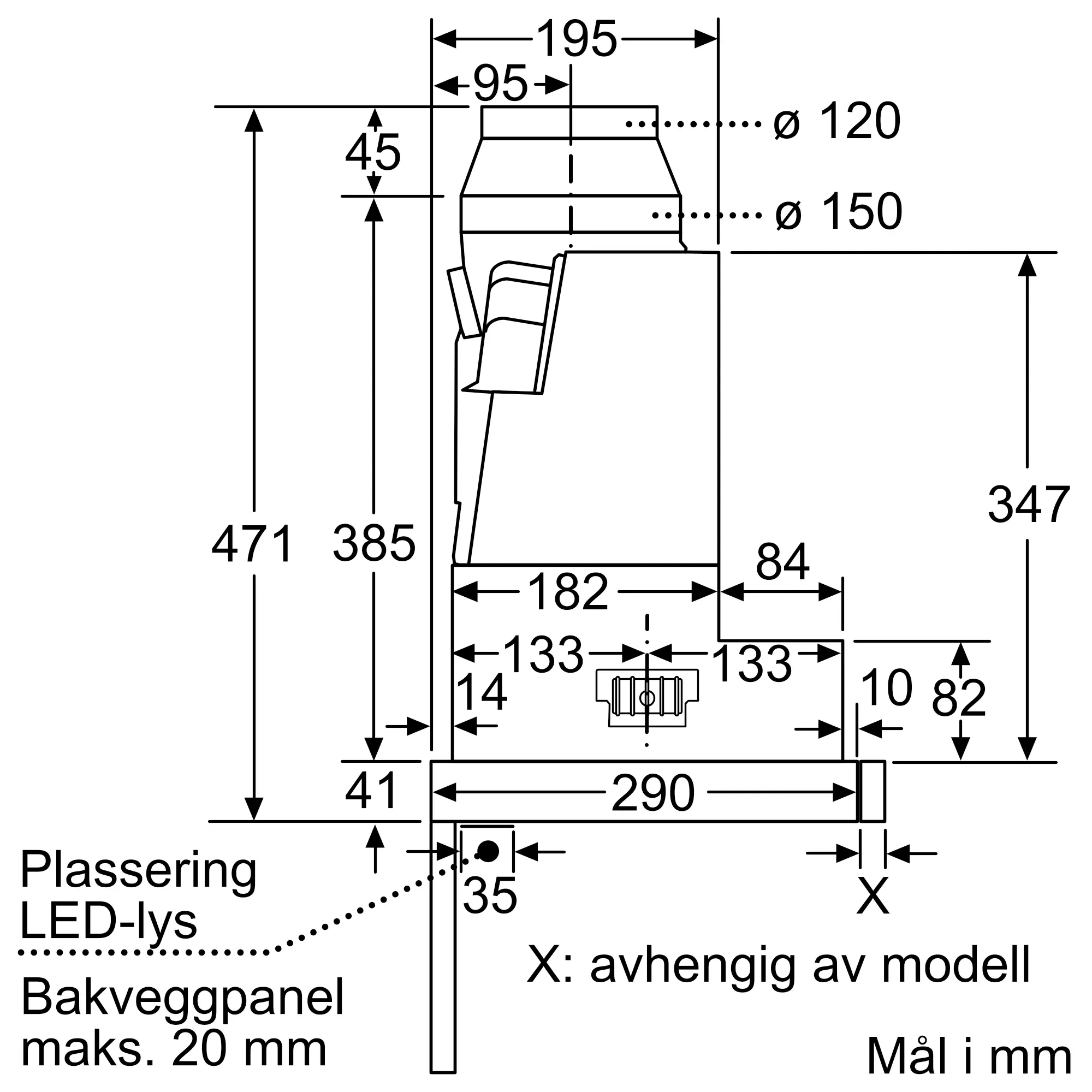 Utluft/resirkulering (tilbehør tilgjengelig separat)