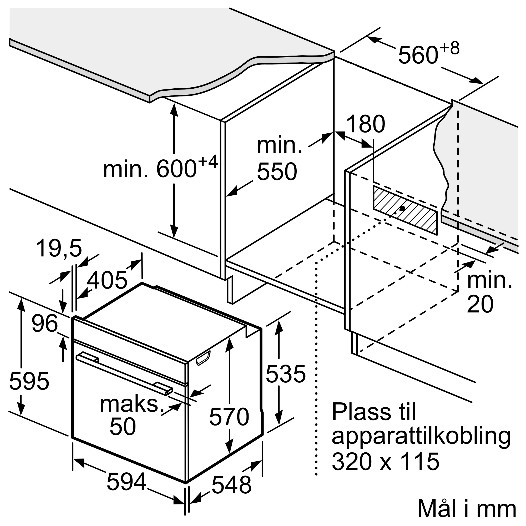 Serie 4 Innbyggingsovn 60 x 60 cm SortHBA571BB3