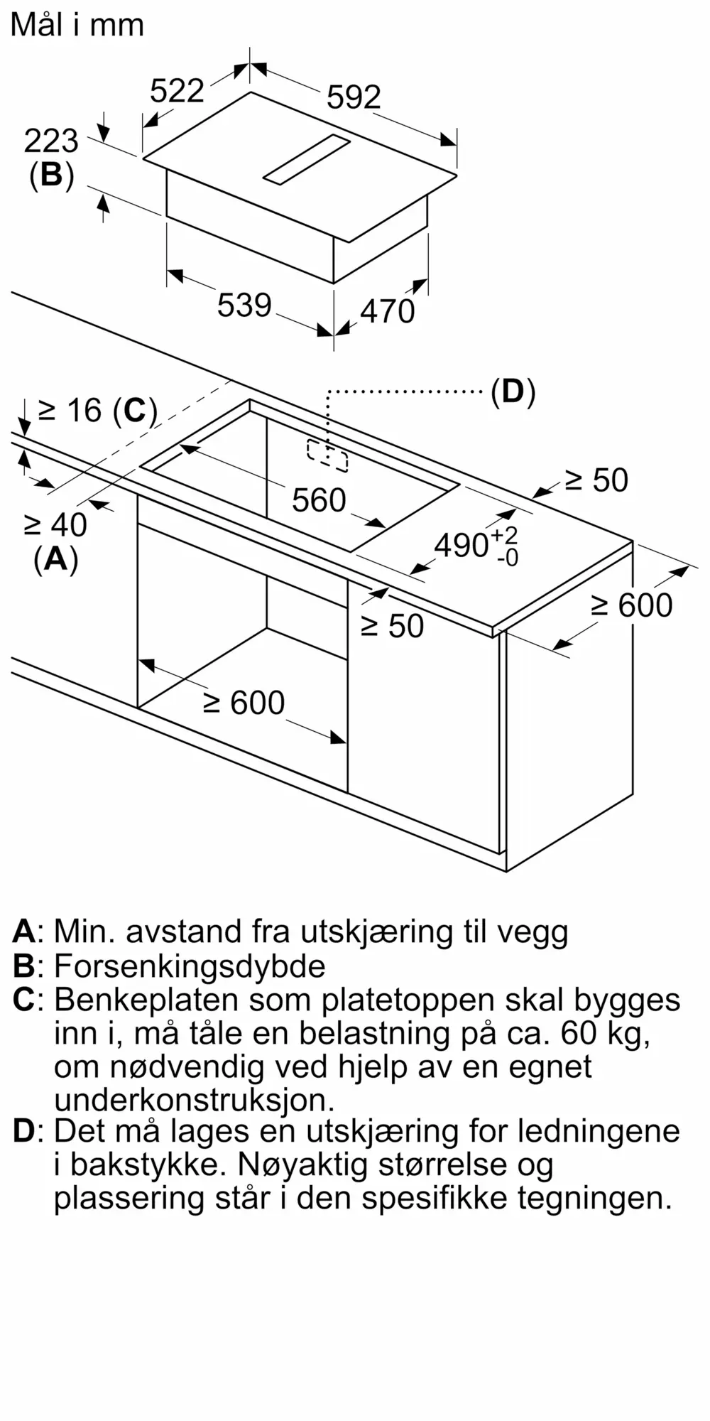 Serie 4 Induksjonstopp med integrert ventilator 60 cm Overflatemontering uten rammePVS611B16E