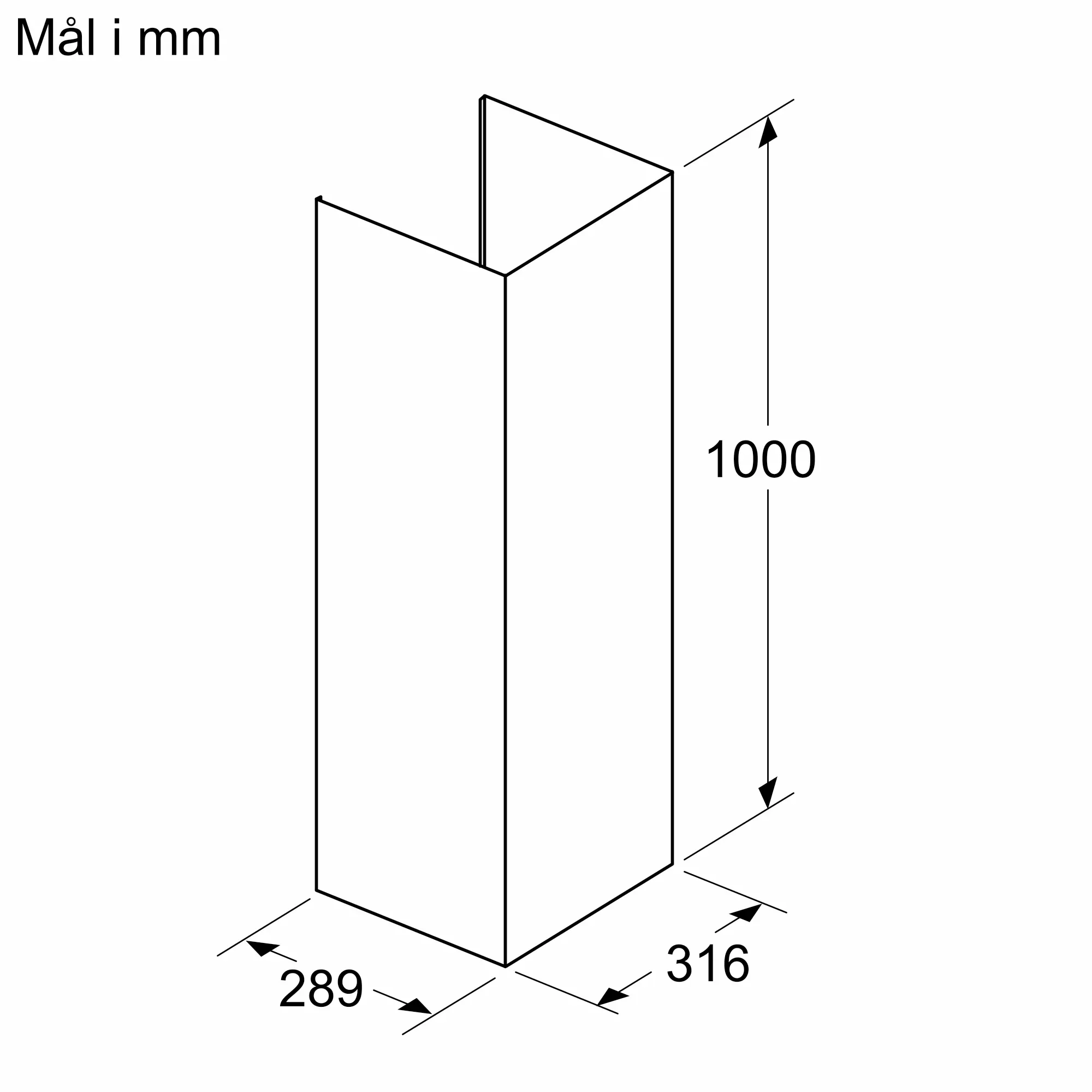 Forlengelse 1000 mm (uten omluftsspalter) for veggmontert avtrekksvifter