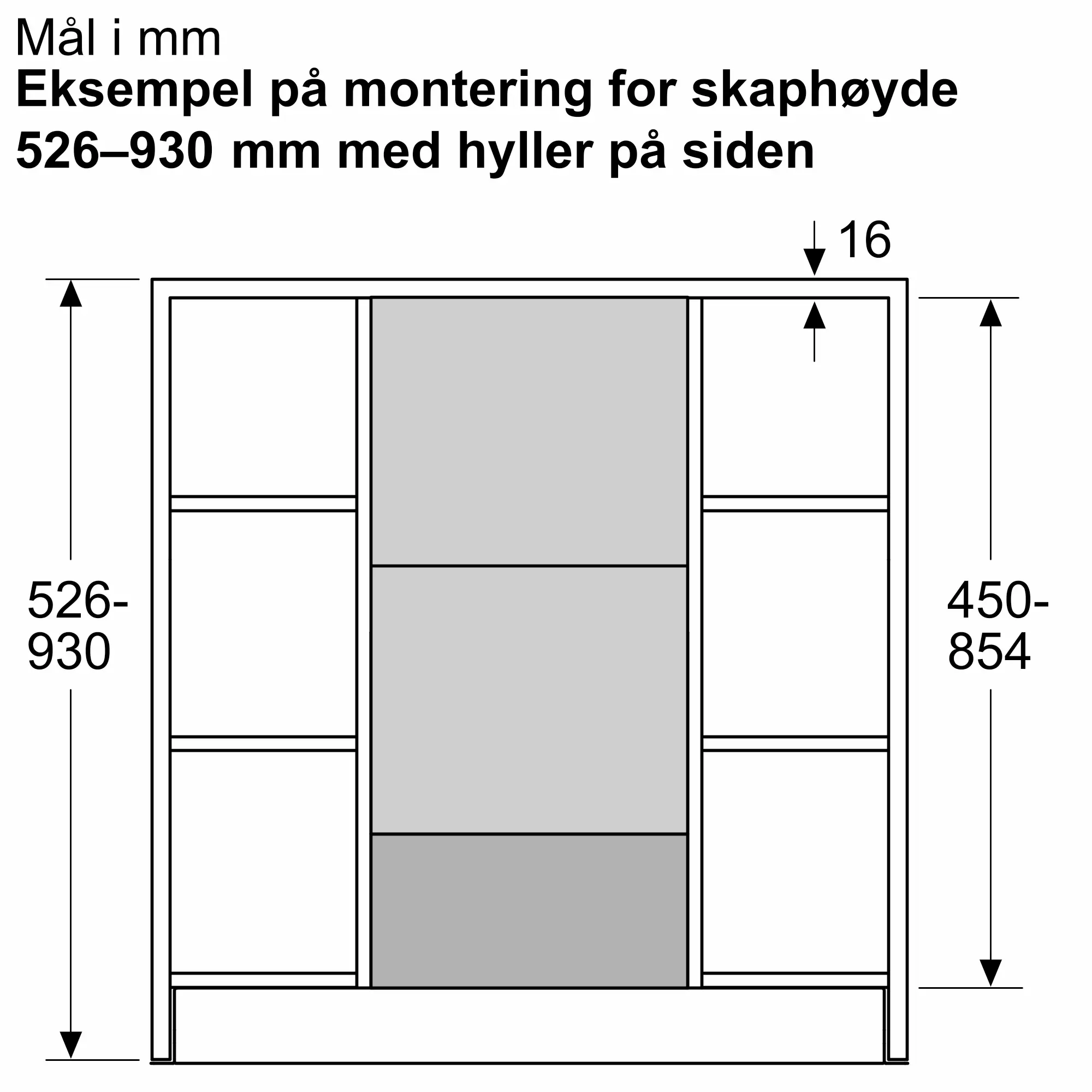 To-delt luftekanalsett for individuell høydejustering i overskapet.
