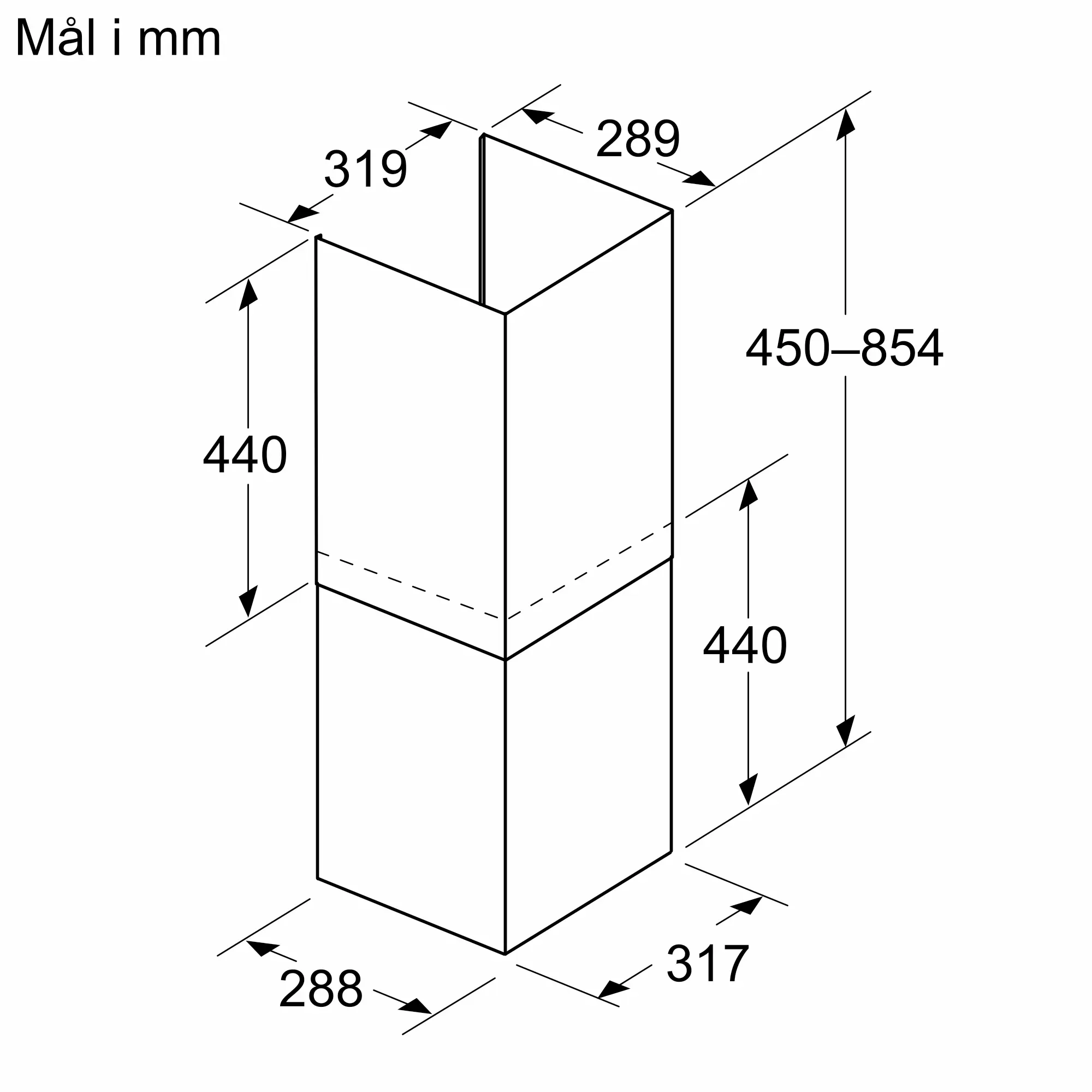 Pipeforlengelse 450-854 mm til integrert designvifte.