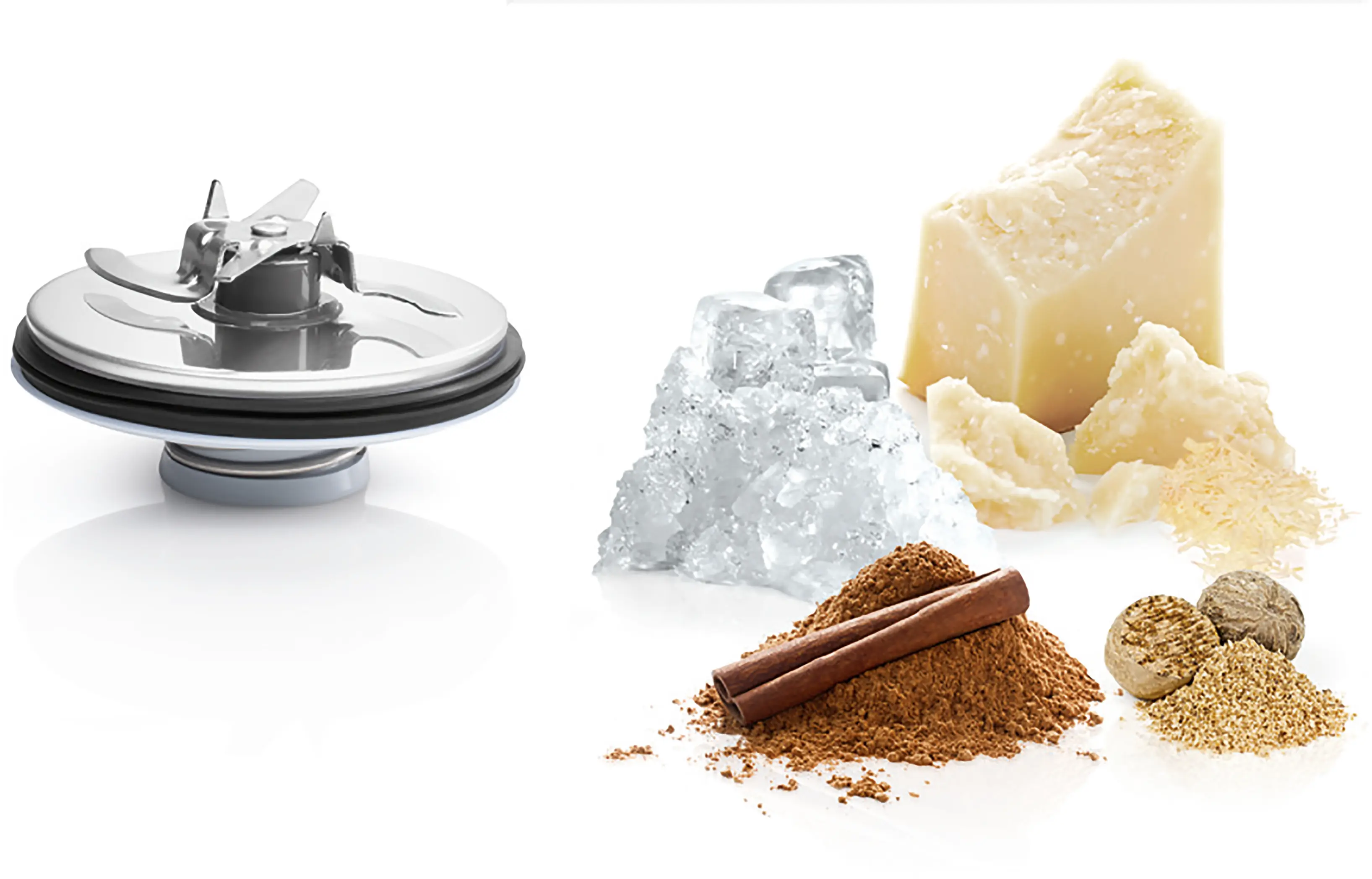 Effektiv maling av kaffebønner, frø, krydder, nøtter, sukker og mye mer. Hakker raskt grønnsaker, frukt, hard ost, urter og blander pesto og desserter.