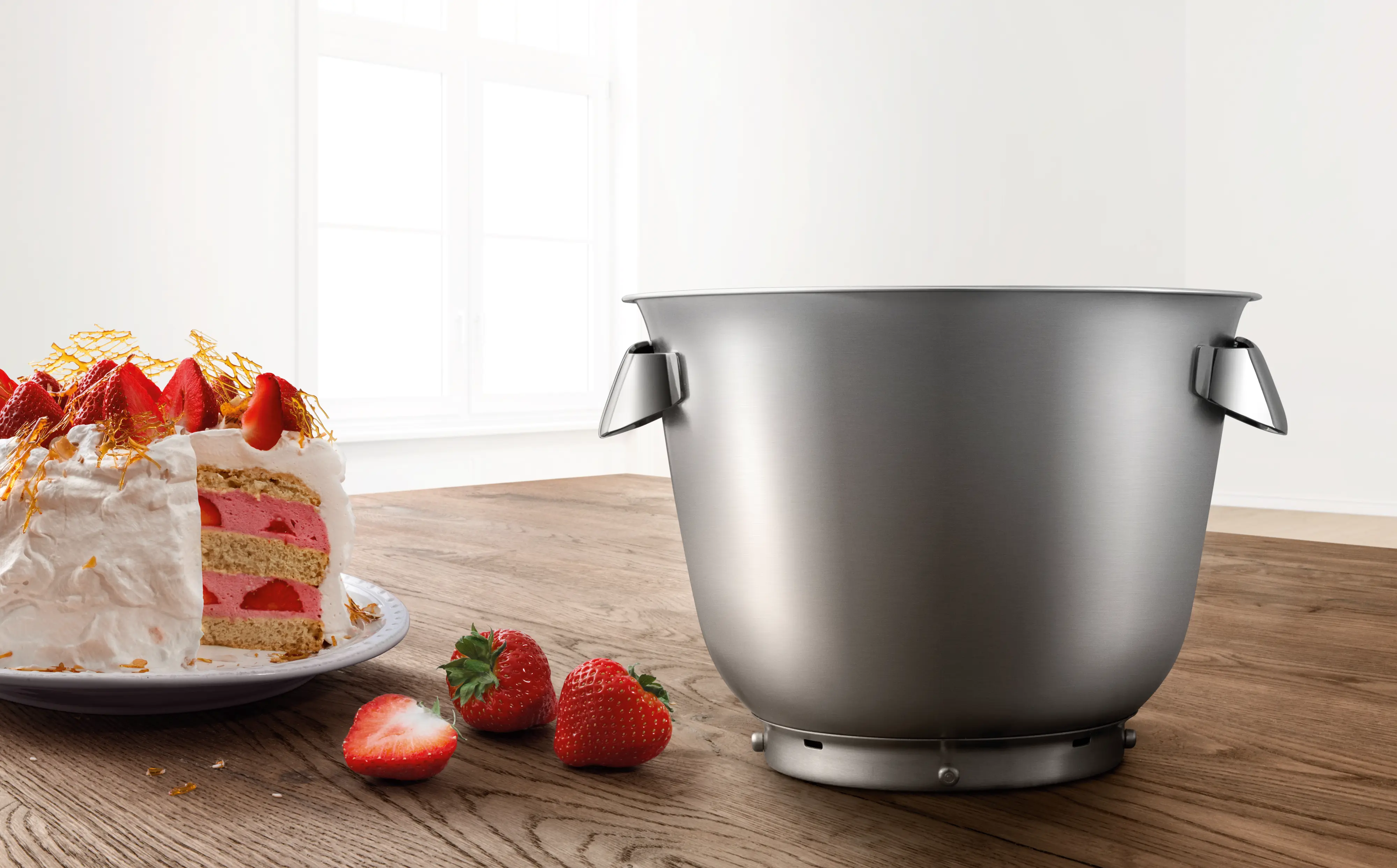 Med et volum på 5,5 liter er den ideell når du skal lage store mengder, f.eks. opptil 3,5 kg kakerøre eller 1,5 kg gjærdeig.