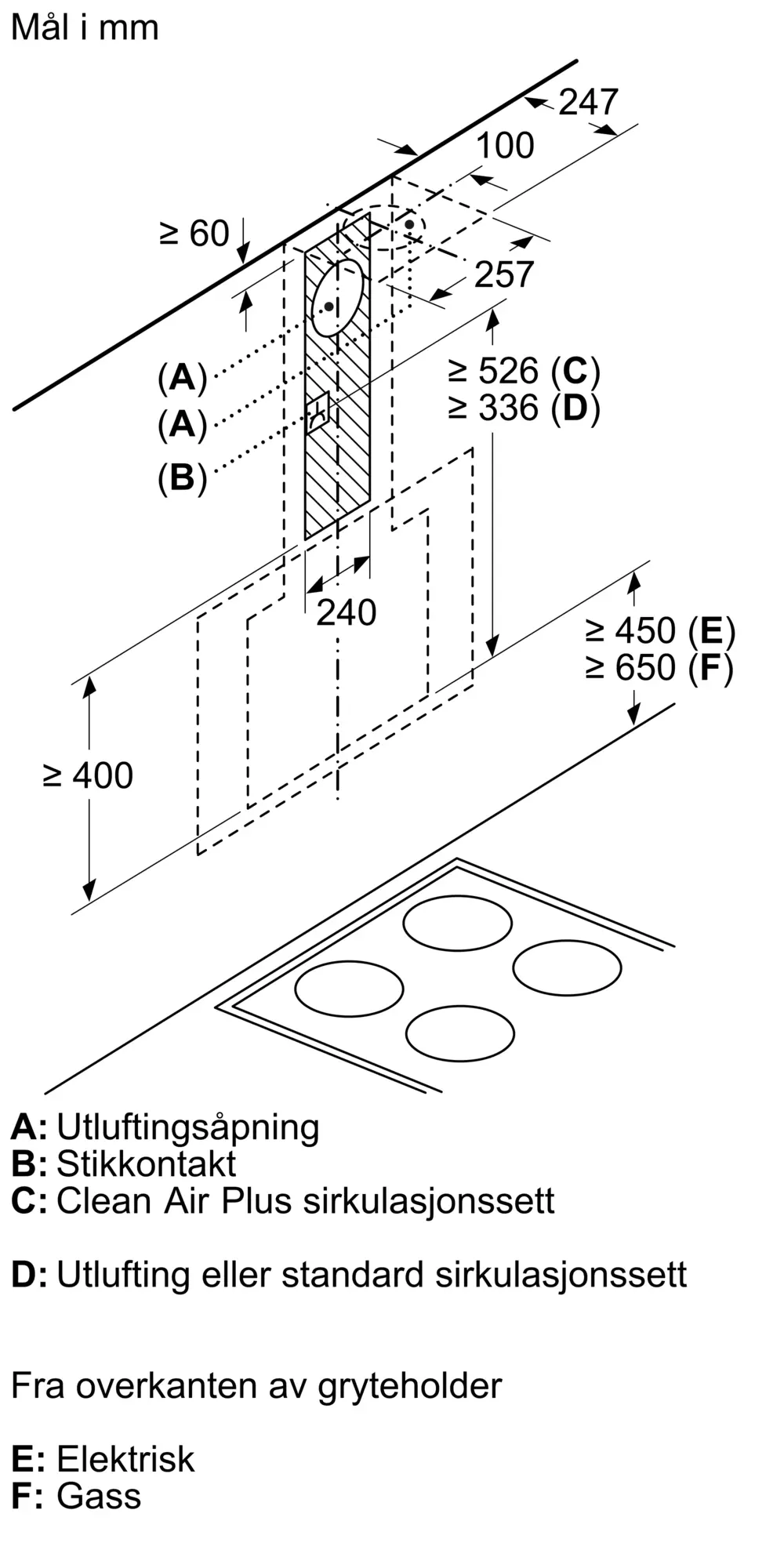 Utluft/resirkulering (tilbehør tilgjengelig separat)