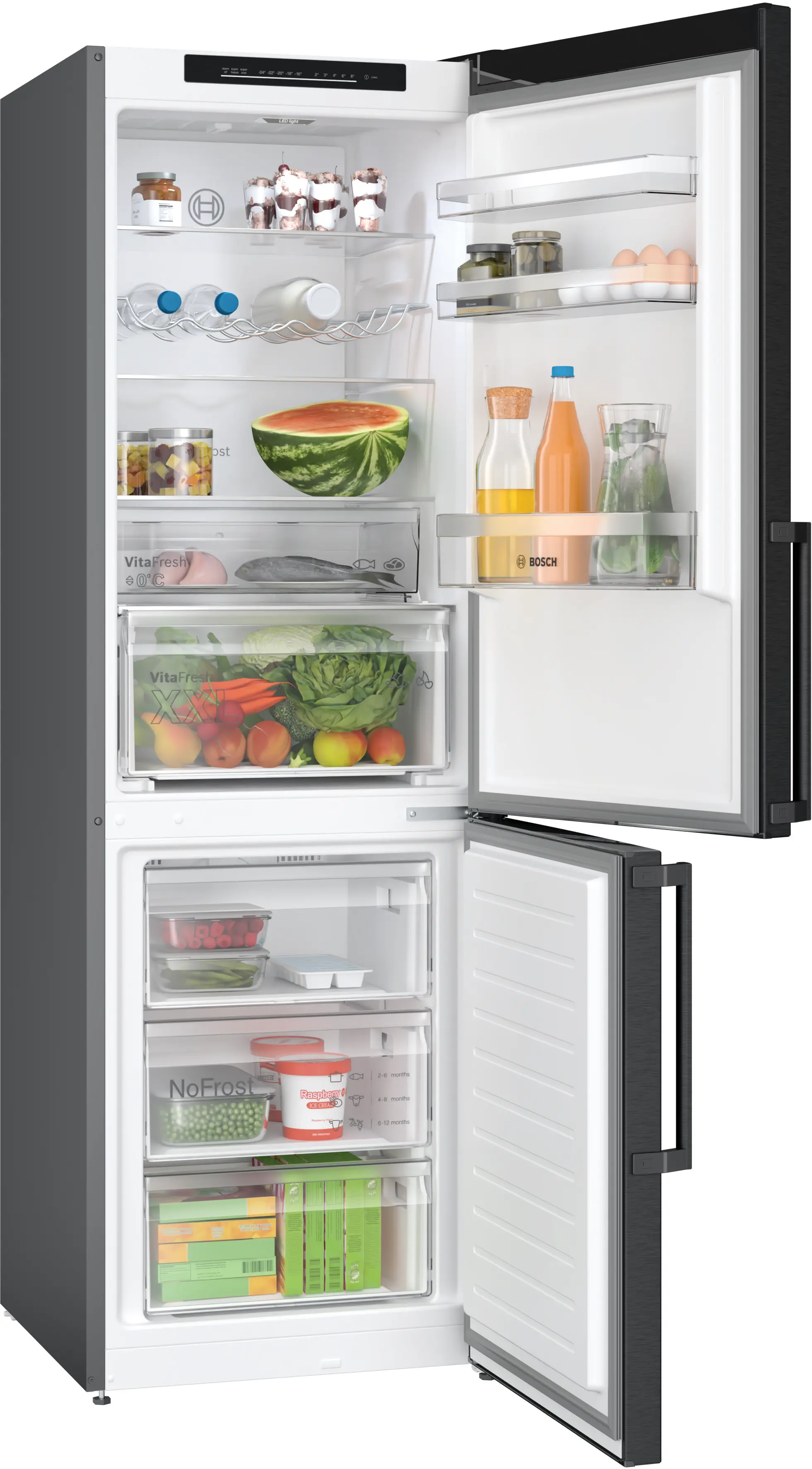 Serie 4 Frittstående kombiskap 186 x 60 cm Mørkt antrasittfarget rustfritt stål, Total No FrostKGN36VXCT