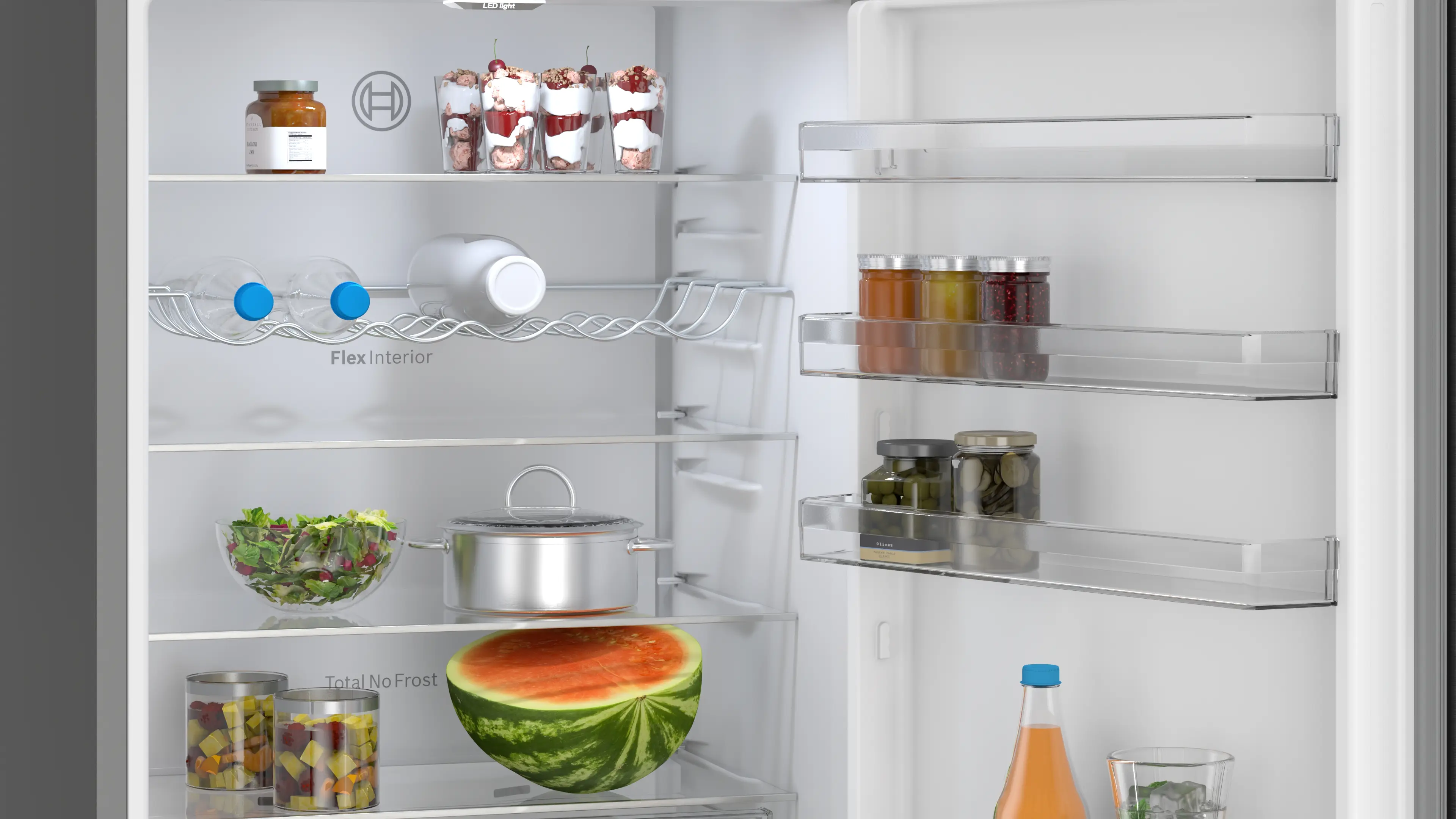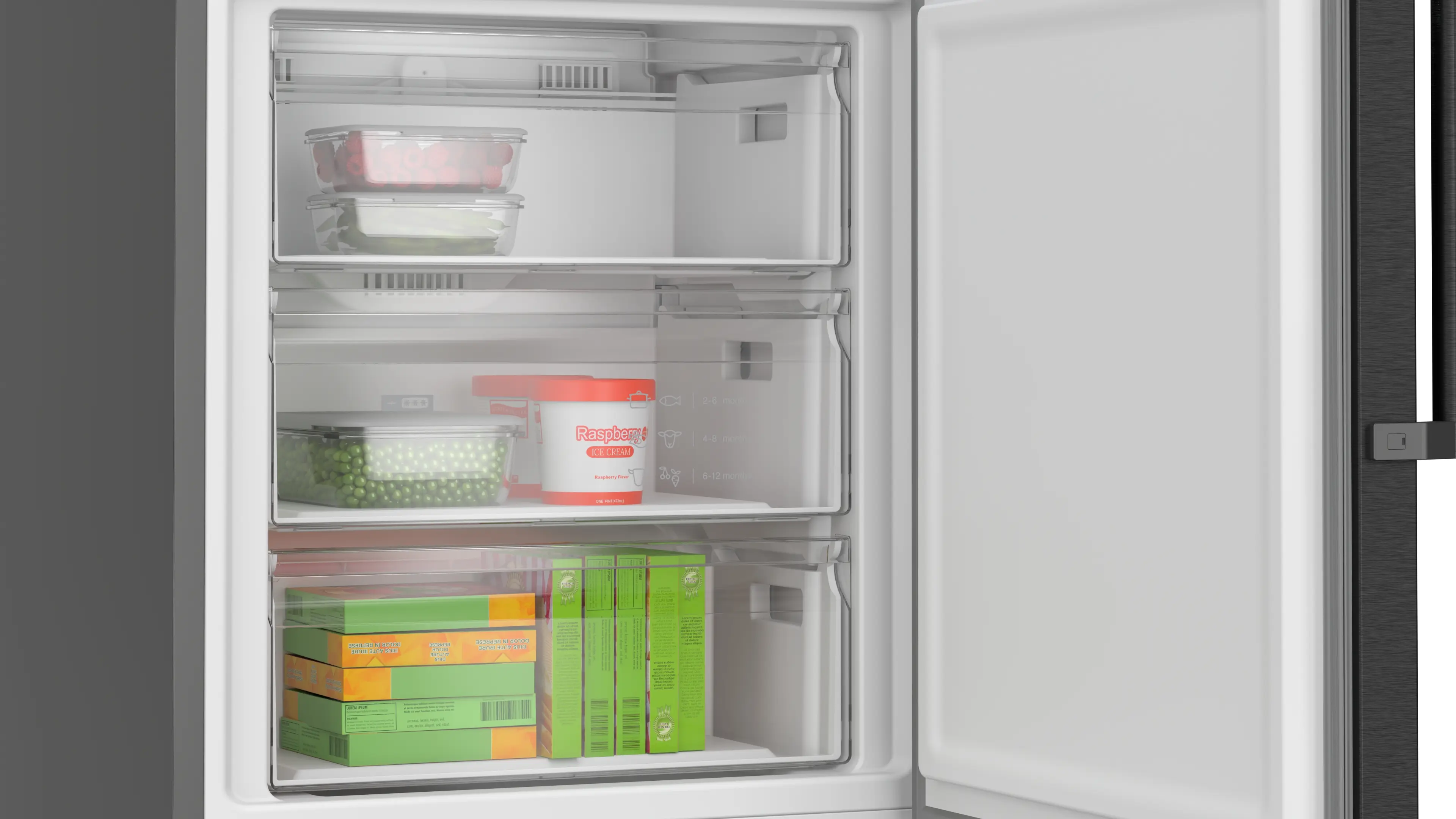 Serie 4 Frittstående kombiskap 203 x 70 cm Mørkt antrasittfarget rustfritt stål, Total No FrostKGN49VXCT
