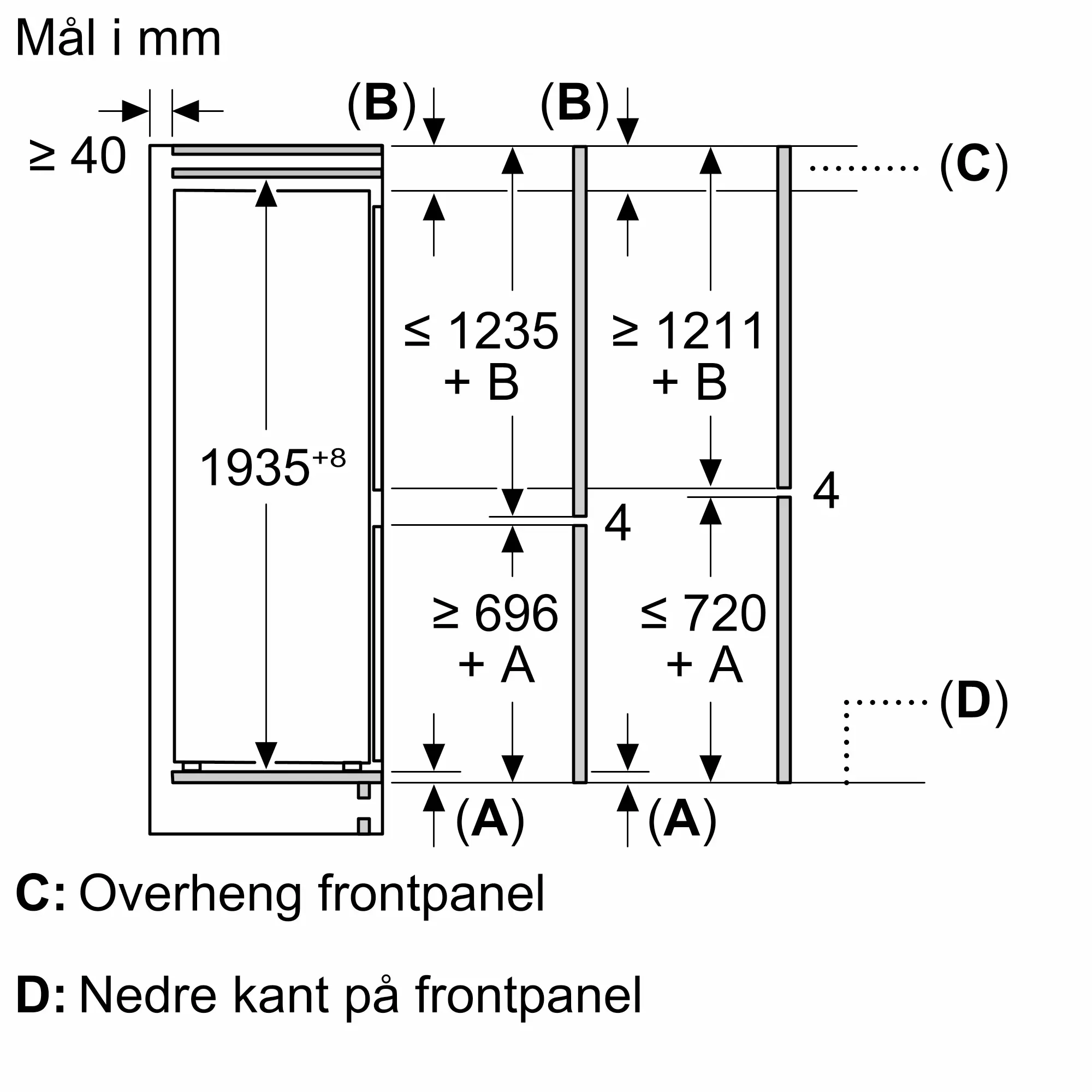 Serie 6 Integrert kombiskap 193.5 x 70.8 cm soft close flathengselKBN96SDD0