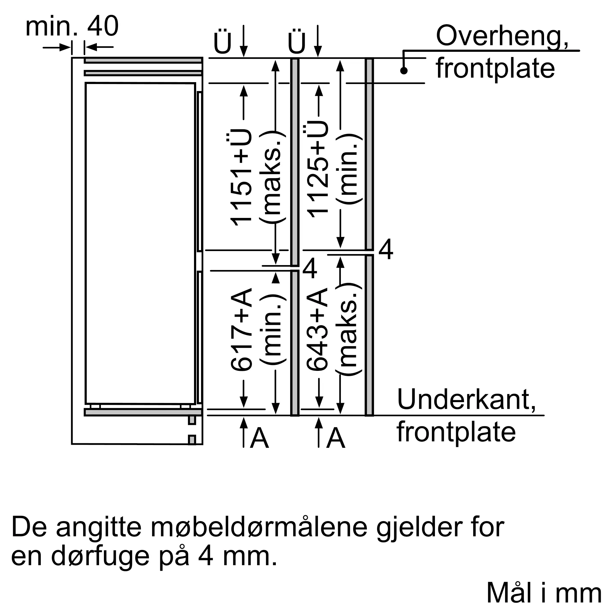 Serie 6 Integrert kombiskap 177.2 x 55.8 cm flathengselKIS87AFE0