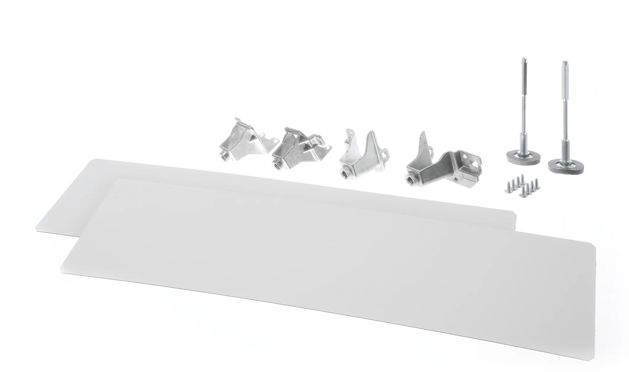 Settet består av 4 ben, 2 plater med selvklebende tape (plassert på gulvet) og skruer til å feste bena til maskinkroppen