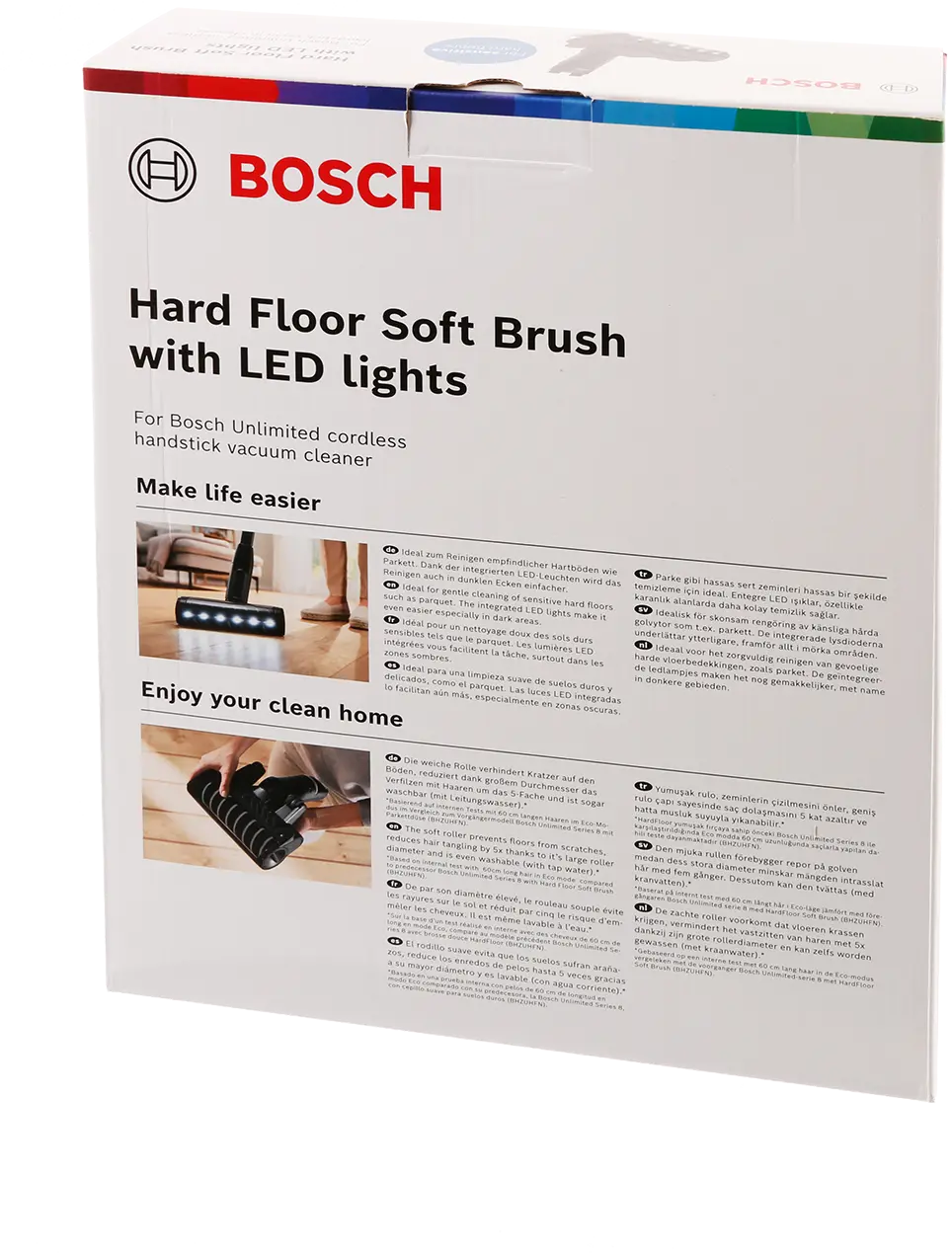 Myk børste med LED-lys: skånsom rengjøring av sensitive harde gulv som parkett